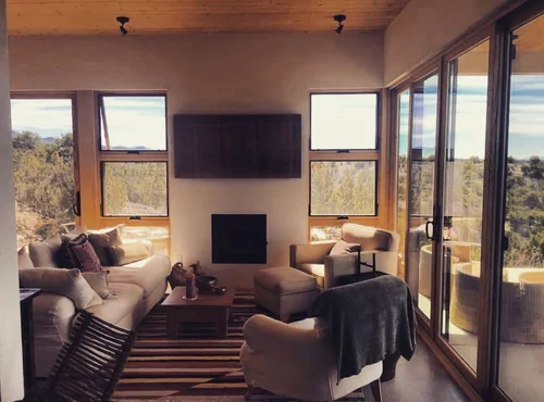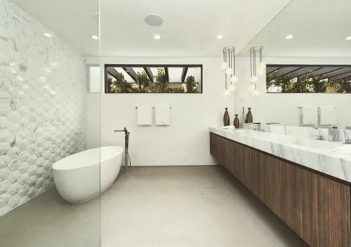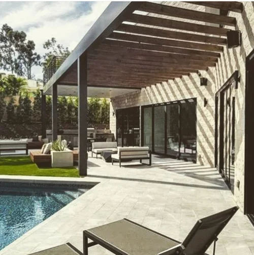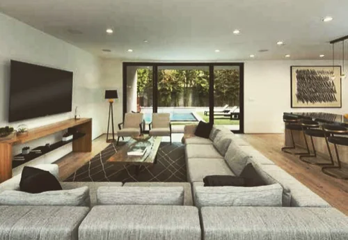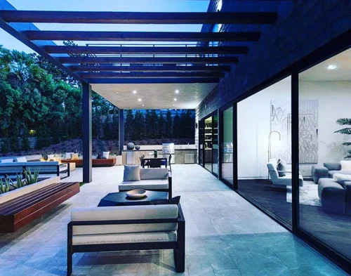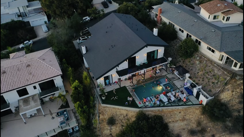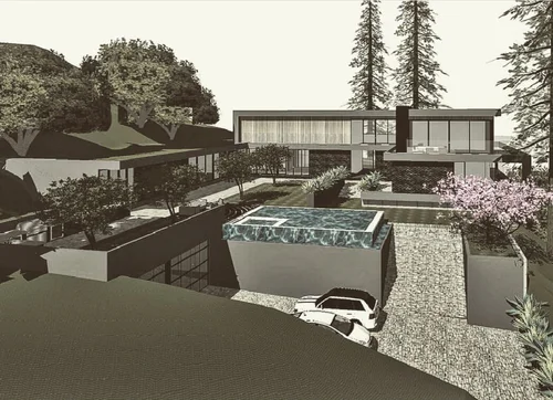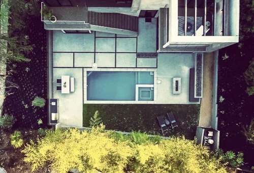 As you retire to the beautifully appointed master wing, you feel as if you have checked into a 6-star resort, with two walk in closets, and a spacious outdoor patio overlooking the pool and city lights. Azul Cielo marble clads every surface of the extravagant master bathroom: two showers, an extra large soaker tub and a sensual countertop with necklace light pendants dangling above. A perfectly placed window overlooks the Hollywood Hills. Generous stairs brings you downstairs to yet another level of LA living at its best. A second master suite is a showstopper with all glass walls opening out onto drought tolerant landscaping and a rectilinear pool and spa. Continue to entertain outside with a custom glass firepit and Lynx barbeque, combining for endless relaxation and entertaining possibilities. After a dip in the spa, come back inside and enjoy cocktails in your media room clad with dark oak walls. Select your media of choice at the touch of a button, as the Control 4 Smart Home system puts all of the music, lights, climate, and security at your fingertips.